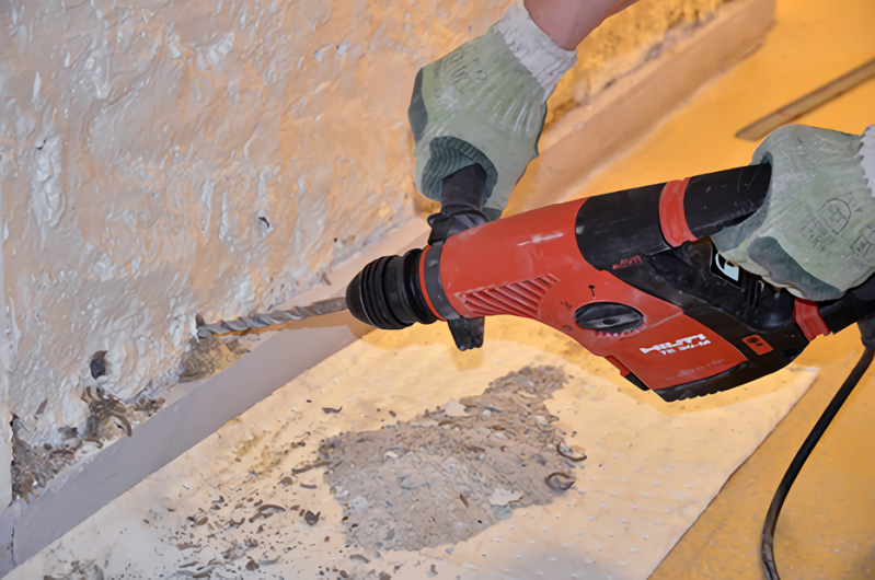 - Décapage des finitions existantes sur toute la hauteur concernée par l’humidité ascensionnelle.