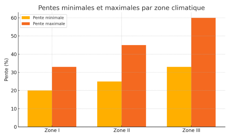 - Respectez les pentes minimales recommandées en fonction de la zone climatique et de l’exposition.