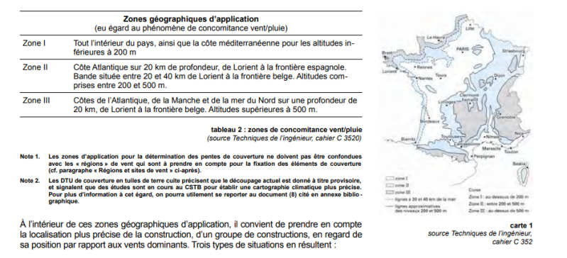 - Ces régions, situées entre 20 et 40 km des côtes, nécessitent des pentes légèrement plus importantes pour une évacuation efficace de l’eau et une meilleure résistance au vent.